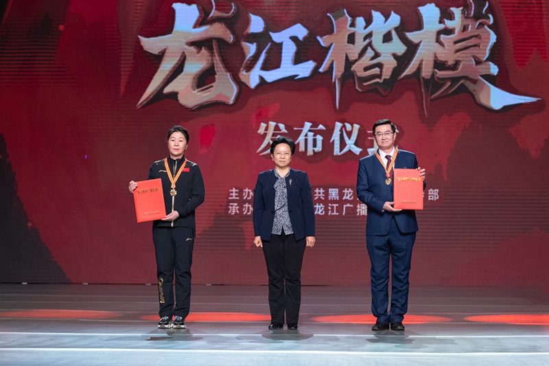 省委常委、宣传部部长贾玉梅为蔡蔚颁发龙江楷模奖章和荣誉证书