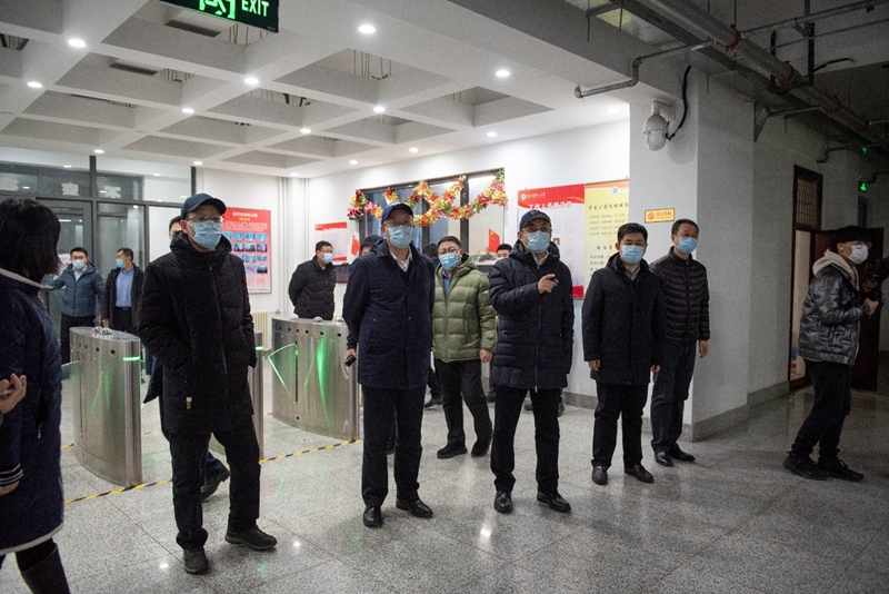 在学府路校门,学校领导详细了解了保卫工作人员的在岗情况、换班频率和入校人员的身份核验流程,要求保卫工作人员要守好人员入校的第一道关口,做到“看好门、管住人”,为学校疫情防控工作兜住底线。