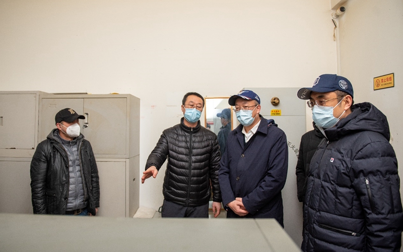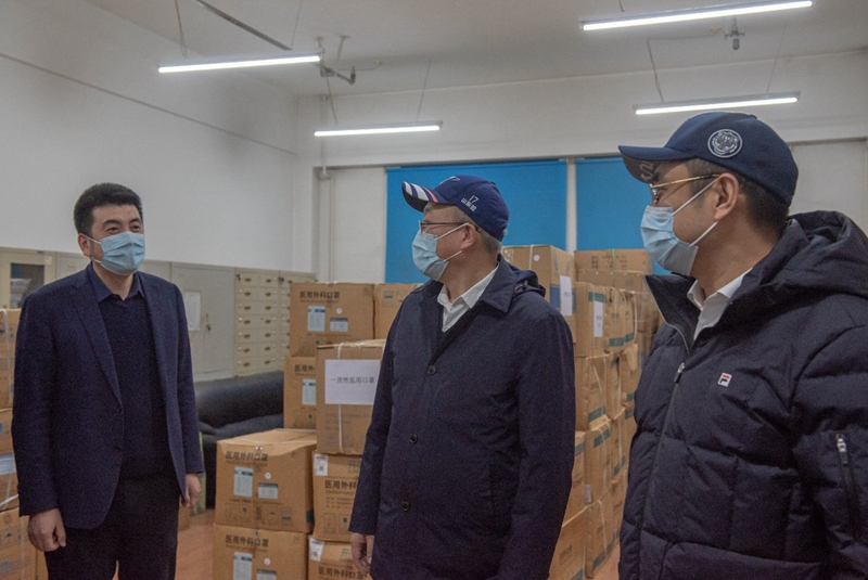 在防疫物资储备库房,学校领导详细询问了学校防疫物资的储备情况、物资采购及使用情况,要求在疫情防控工作中做到“兵马未动、粮草先行”,保障好学校防疫物资的储备与供给,筑牢抗疫的“物理防线”。
