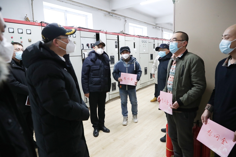 “值班的环境怎么样?”“家里的团圆饭安排好了么?”“衷心感谢各位舍小家、顾大家的奉献精神!”……每到一处,学校领导都与值班职工亲切握手,详细询问大家的身体健康情况、家里过年安排情况,了解寒假期间校园内相关设备运行、供暖供气供水供电、应急处置、安全责任等民生保障的落实情况。