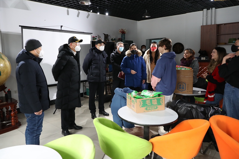 学校领导在南区留学生公寓看望慰问留学生和外国语学院教职工