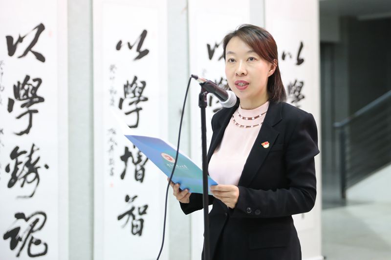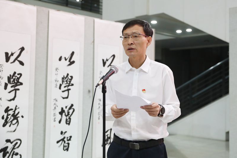 郭加利致欢迎辞,他代表学校向参加此次活动的各位领导、嘉宾表示热烈欢迎。他表示,以书法这种独特的艺术形式开展主题教育理论学习,这是学习形式更加生动的一次尝试,也是学校师生推动主题教育走深走实的另一种实践拓展。希望通过赏析书法的艺术形式,深刻学习和领会开展主题教育的重大意义,深刻领悟“两个确立”的决定性意义,不断增强“四个意识”、坚定“四个自信”、做到“两个维护”,牢牢把握习近平新时代中国特色社会主义思想的世界观、方法论,为学校各项事业高质量发展提供坚强保证。