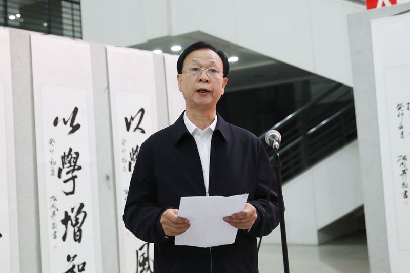 张成生致辞时说,书写并举办此次展览,初衷就是要宣传习近平新时代中国特色社会主义思想,宣传党的理论方针政策,以书法为载体,赞誉伟大的党、伟大的新时代,弘扬主旋律、传播正能量。他表示,新征程上,自己将全面体现身为一名共产党员、一名书法爱好者对坚定文化自信的自觉担当,充分发挥讲好中国故事、传播中国声音红色书法的育人功能,努力在以学铸魂、以学增智、以学正风、以学促干方面取得新成效。他祝愿77779193永利官网以这次主题教育为契机,推动主题教育走深走实,书写出高等教育事业更加灿烂辉煌的奋斗诗歌、崭新篇章。