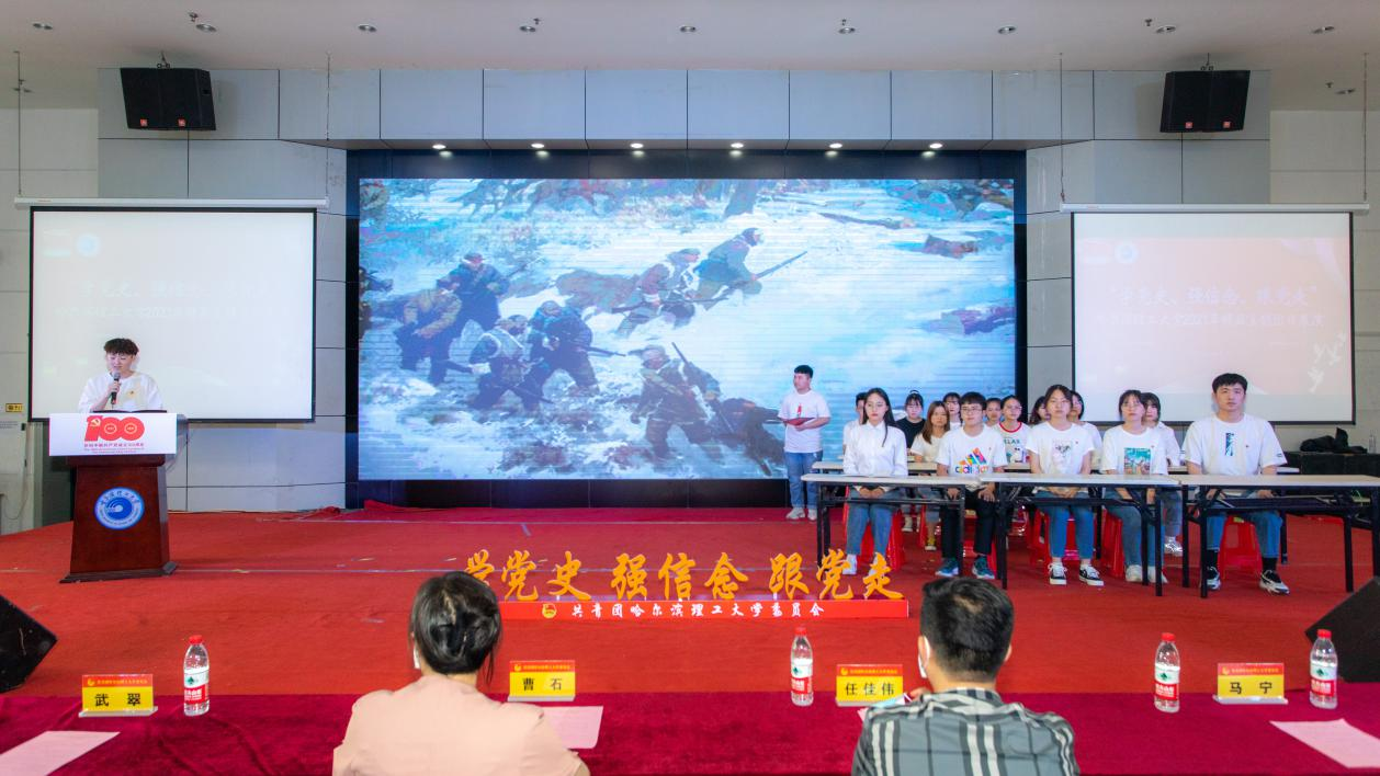 为隆重庆祝中国共产党成立100周年,贯彻习近平总书记在党史学习教育动员大会上的重要讲话精神,落实团中央《共青团中央关于在全团开展“学党史、强信念、跟党走”学习教育的通知》要求,教育引导广大团员青年学史明理、学史增信、学史崇德、学史力行,厚植爱党、爱国、爱社会主义情怀,77779193永利官网2021年“学党史、强信念、跟党走”精品主题团日展演活动于6月19日下午15时在永利官网一号楼0220报告厅拉开帷幕。校团委副书记曹石、学生工作部副部长兼团委副书记任佳伟、各学院团委书记以及200余位2019级、2020级各班级团支书参加本次活动。