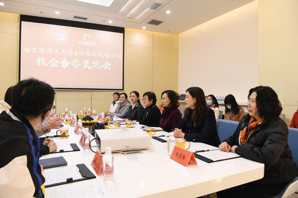女博士联谊会会长邓彩霞代表联谊会发言。她首先对哈尔滨极地公园高度重视此次校企合作交流表示感谢,介绍13年来联谊会在省妇联、学校党委领导下以“知性、奉献、快乐、进步”为宗旨,开展科技沙龙、集体联谊、论坛讲座、捐资助学和校企合作等活动,发挥了妇女“半边天”的作用;女博士们能立足岗位,勇于担当,奉献爱心,服务社会,为助力学校“双一流”建设、推动龙江经济发展建功立业,展现了“巾帼心向党,柔肩担重任”的美好形象。她指出,哈理工一直以来重视学校与企业的合作交流,高校的人才培养、双一流建设、师资队伍建设和课程改革等方面必须贯穿校企合作,学校拥有人才优势,企业有强大的市场和平台优势,只有校企合作才能相互补充,相互融合,将学校和企业自身的优势进一步发挥出来。她坚信通过双方共同努力一定会拓宽校企合作之路,携手并进,互利共赢,推进教育教学高质量发展。