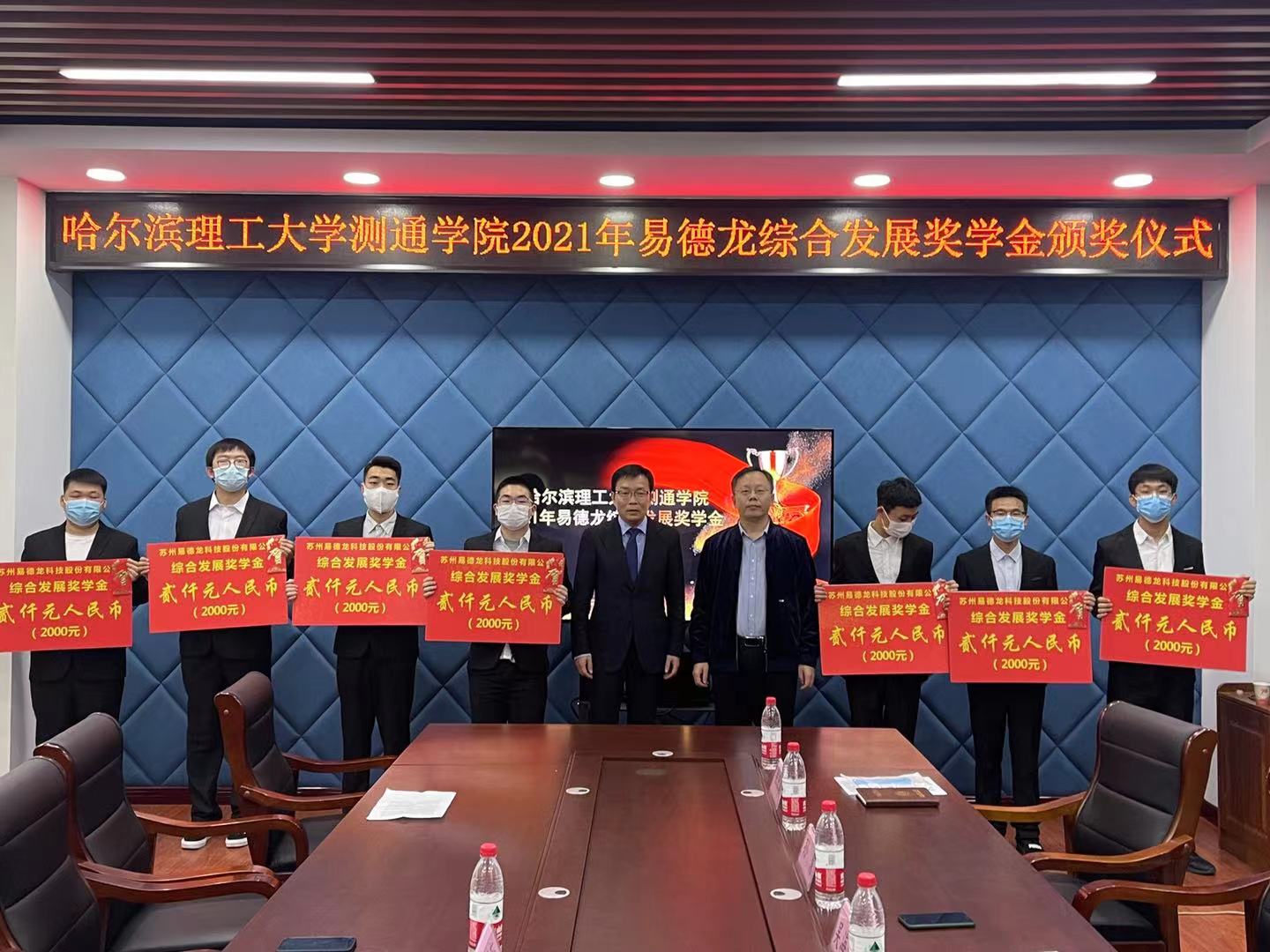 10月27日下午16时,测通学院在教学主楼E1025举行第二届“易德龙综合发展奖学金”颁奖仪式,苏州易德龙科技股份有限公司副总经理江卫东、测通学院党委书记兼院长吴海滨、副院长盖建新、孙慧、学院辅导员、获奖学生及曾经在苏州易德龙科技有限公司实习的20余名我院毕业生参加颁奖仪式,活动由学院党委副书记张宏磊主持。