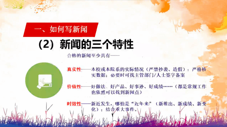 王景成主任通过分析网络案例,以高校舆情处置和舆论引导为切入点,结合新媒体时代下高校处理网络信息工作的原则、方法和策略,从通报写作、媒体采访等方面对学院如何在新媒体环境中提升网络舆情处置能力给予了合理化建议。培训中,王景成主任还结合各类活动形式和内容,讲解了新闻信息写作、摄影技巧等内容,以通俗易学的方式提高师生们对新闻写作知识的掌握能力。
