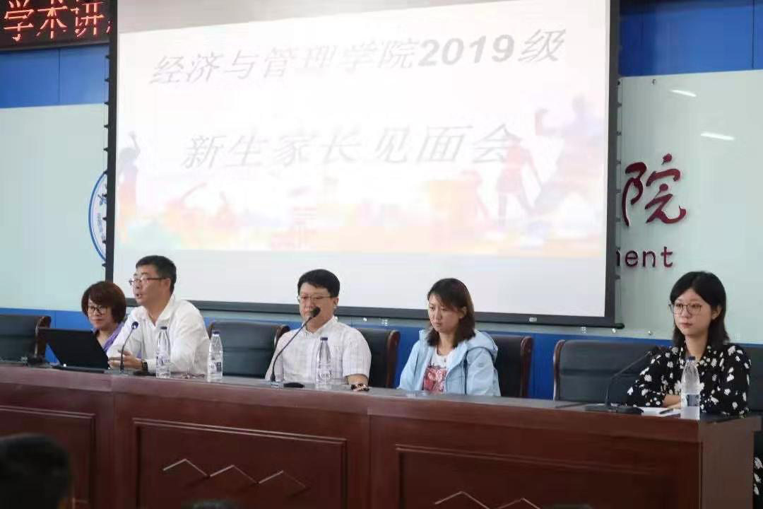 为了加强学校与家长之间的沟通和交流,帮助家长加深对学院专业学习和学生工作的了解,同时,更是为了学生的全面发展与成长成才,帮助家长了解学生在校的规章制度与培养体系,让每一位家长能够参与到学生的教育管理中来,形成学校、家庭、老师“三位一体”的立体交叉管理模式,同时,共同关心、关注孩子的健康成长,培养出德智体美劳全面发展的社会有用人才,经济与管理学院于8月31日14时在南区一号楼740召开了2019级新生家长见面会。学院党委副书记兼副院长宋广军,学院辅导员办公室主任、信管专业辅导员崔国红,院分团委书记、研究生辅导员甄志勇,院学生会指导教师、分团委副书记、工管专业辅导员程然及2019级学生家长出席并参加了此次会议,见面会由学院2019级年级主任、经济学类专业辅导员温浩然主持。