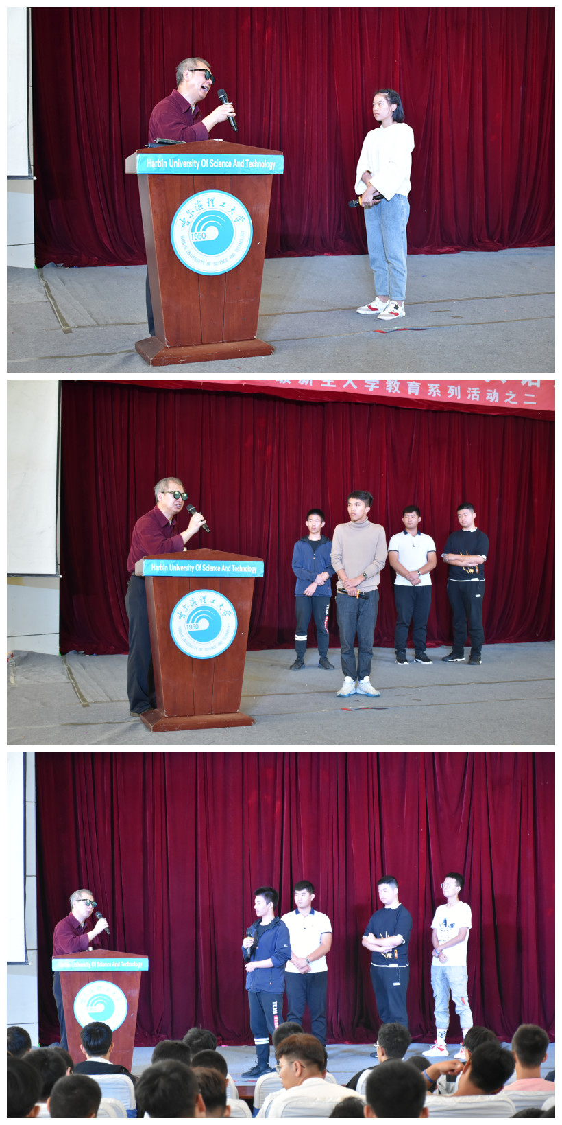 为贯彻习总书记的重要讲话精神,抓住青少年价值观形成和确定的关键时期,引导青少年扣好人生第一粒扣子,帮助新生坚定理想信念、树立远大理想、尽快适应环境、明确学习目标、合理规划大学生活具有十分重要的作用。机械动力工程学院于9月3日在西区1号楼0220召开2019级“自强模范与机械学子共话人生”入学教育讲座,邀请黑龙江省残联副主席、黑龙江省盲人按摩协会会长、校医院按摩医师柏大林老师。机械学院600余名新生聆听了本次讲座。