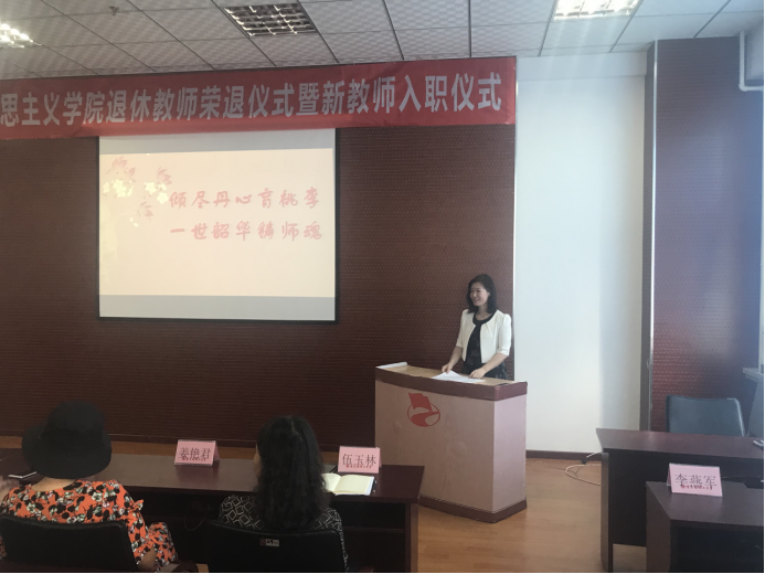 9月5日上午9时,新主楼E1304会议室温情洋溢,马克思主义学院隆重举行退休教师荣退仪式暨新教师入职仪式。校党委常委、宣传部部长周长群、教务处处长宋清昆应邀出席仪式,马克思主义学院全体教师参加,仪式由学院党委书记李燕军主持。