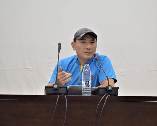 体育教学部刘正国老师向新生讲解体育课相关内容