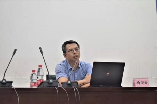 材料学院党委副书记兼副院长杨剑锐老师为新生做了一堂深入浅出的入学讲座,杨剑锐副书记就大家对于大学阶段的适应性、大学生活的基本模式做了介绍,也表达了对2019级新生的期望和寄许。