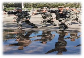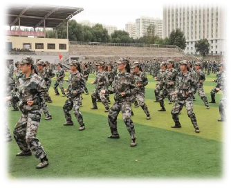训练场上刻苦训练的理工学子