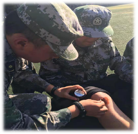 教官为受伤学员细心处理伤口