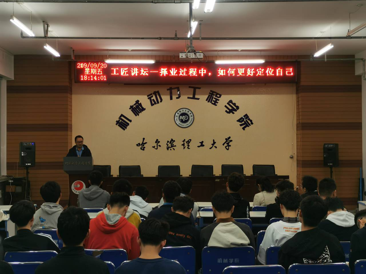 9月20日18时,永利官网机械动力工程学院99级机械制造及其自动化专业优秀校友、宜讯汽车装备(上海)有限公司总经理李宝明在学院邀请下,在新主楼C305为我院学生举办“择业过程中,如何更好定位自己”为主题的工匠讲坛讲座,学院党委副书记副院长杨芳、辅导员李龙文以及机械学院各年级优秀学生参加了本次讲座。