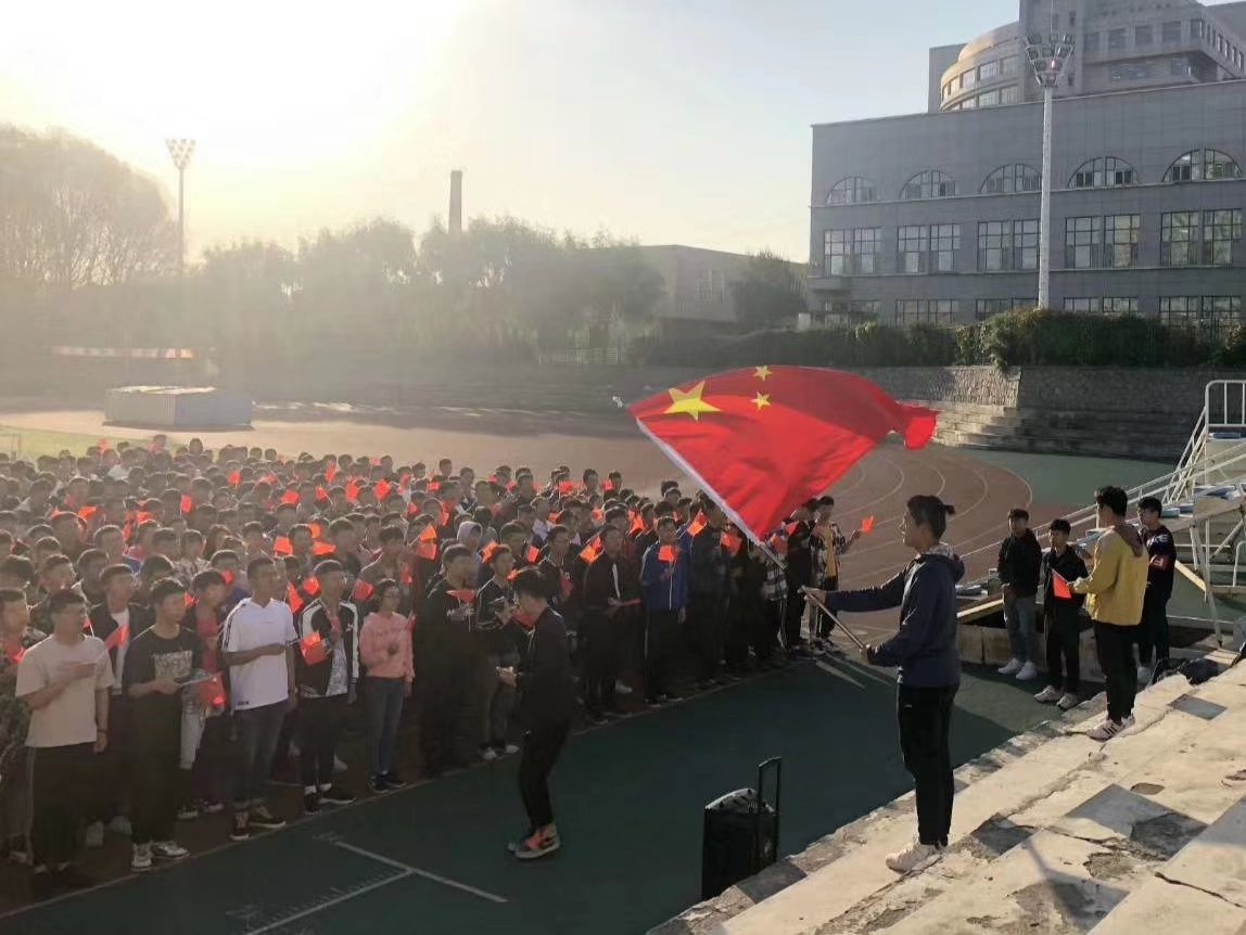 为庆祝祖国七十华诞,2019年9月30日晨曦行动时间,材料学院2019级同学于南区运动场唱响《我和我的祖国》、《歌唱祖国》等歌曲。