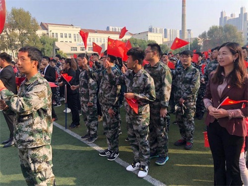 2019年10月1日8:00,材料学院师生代表在西区足球场参加“不忘初心、牢记使命”主题教育集中学习活动暨庆祝新中国成立70周年主题升旗仪式。观看《70年,我是主角》视频短片后,全体师生合唱《我和我的祖国》,在嘹亮的国歌声中五星红旗冉冉升起。第十届全国高校辅导员年度人物任佳伟代表全校师生发言,回顾祖国七十年来的伟大成就和沧桑巨变。活动最后,全体师生共同向伟大祖国告白:祖国母亲,生日快乐!