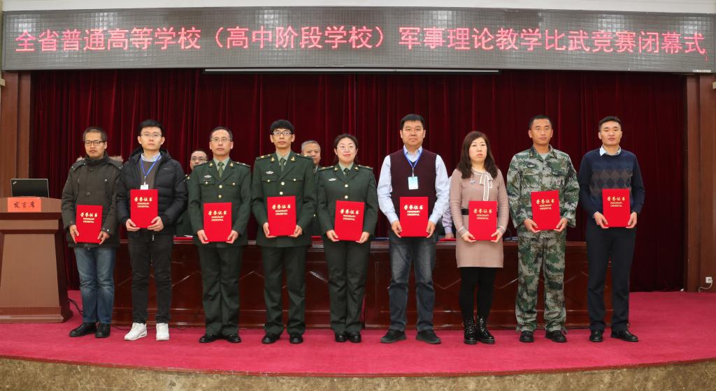 为深入贯彻国务院办公厅中央军委办公厅《关于深化学生军事训练改革的意见》精神,以新颁布的《普通高等学校军事课教学大纲》为依据,以新《大纲》必讲内容为重点,以赛促教、磨练精兵、检验成果、打造精品,努力建设一支业务精良、素质过硬、技能全面的军事教师队伍,全面推进黑龙江省学生军训工作持续深入发展,黑龙江省教育厅、黑龙江省军区战备建设局于11月19—21日联合举办全省普通高等学校(高中阶段学校)军事理论教学竞赛,全省普通高校和部分高中参加竞赛。在竞赛颁奖仪式上,省军区学生军训办领导在总结讲话中多次对哈理工学生军训工作给予高度评价。