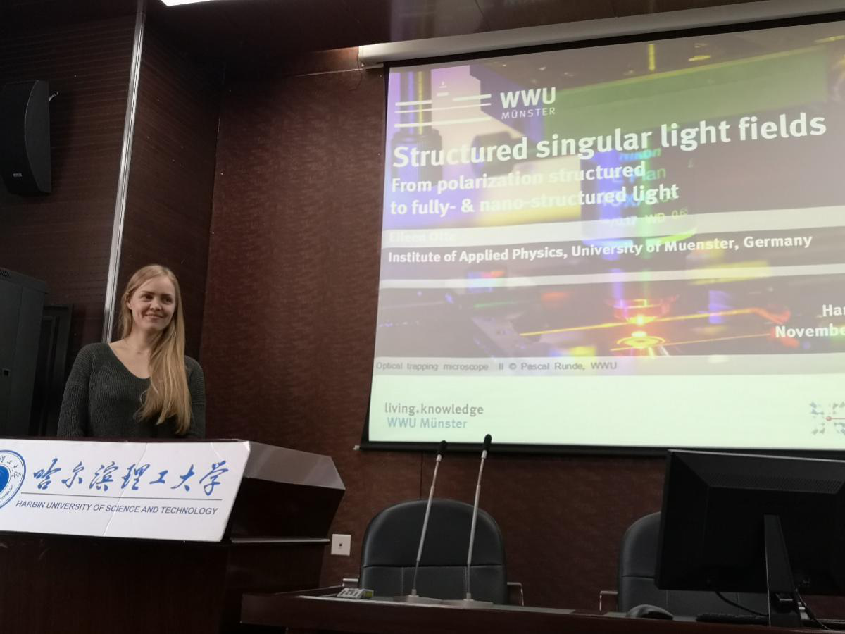 19日的专家邀请报告部分,应理学院物理系Carmelo Rosales Guzman教授邀请,国际光学领域优秀学者Eileen Felicia Otte博士为永利官网师生带来了题为《奇点光学及其在光镊技术中的应用》学术报告。报告由Guzman教授主持,物理系研究生、大珩班本科生和相关教师参加了报告会。奇点光学(Singular Optics)是现代光学的一个新的分支学科,其研究对象是基于光场位相或偏振奇点出现的波前位错和波前拓扑结构,涡旋光束及矢量光束是奇点光学的重要组成部分,近年来是光学领域的研究热点,已经在光学信息传输、光学显微术、生物医学等领域发挥了重要作用。Eileen博士深入浅出的介绍了奇点光学在拓扑物理中的前沿问题,以及在新型光镊技术中的应用。会后,和物理系师生进行了热烈的讨论和广泛的交流,并在进一步深入合作和联合培养学生等方面达成了共识。
