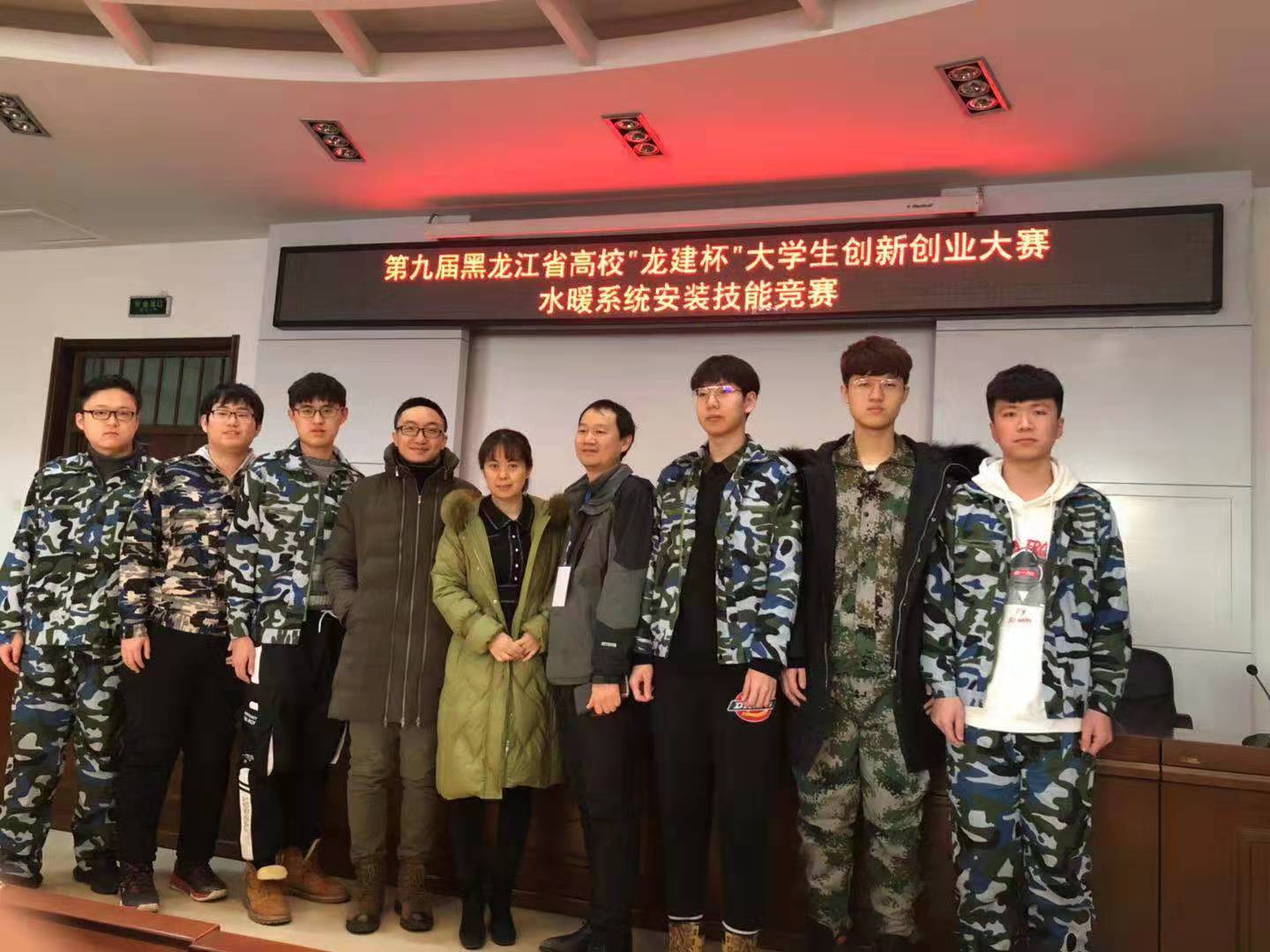 第九届“龙建杯”大学生创新创业大赛是由黑龙江省住房和城乡建设厅、黑龙江省教育厅与黑龙江省科学技术协会联合举办,水暖系统安装技能大赛是本届“龙建杯”大学生创新创业大赛新增模块,主要考核学生建筑给排水系统安装、室内供热系统安装等基本理论知识和绘图、施工组织、工程验收等能力。竞赛内容包含理论测试(占30%)和操作技能(占70%)两部分:理论测试部分要求学生掌握水暖安装验收规范知识和手绘给水排水平面图和轴侧图;操作技能部分要求学生,完成一个卫生间所有卫生器具冷热水给水及排水系统安装和测试。