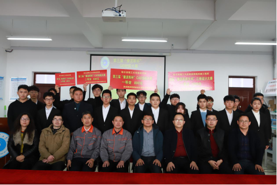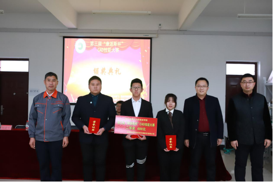 为提高学生专业技能,增强学生创新能力,进一步加深校企产学研合作,让学生充分了解房车产业发展。2019年11月,在荣成康派斯新能源车辆股份有限公司大力支持下,由荣成学院机械工程系和院团委主办,机械工程系学生会承办的77779193永利官网荣成学院-第九届大学生学术科技节活动之第三届“康派斯杯”CAD技能大赛成功举行。大赛从宣传开始就得到了全校的广泛关注,先后有机械系、电气系、建工系、艺术系等142名同学参赛,经过激烈角逐,最终产生一二三等奖以及优秀奖40名获奖同学。2019年12月19日下午,荣成学院第三届“康派斯杯”CAD技能大赛颁奖典礼在一号实验楼405举行。荣成康派斯新能源车辆股份有限公司副总经理许兵武、办公室主任刘春文、荣成学院党委副书记兼副院长王坤,机械工程系主任王仲文,学生工作办公室主任赵军,教务办公室副主任宋鸣,机械工程系党总支副书记兼副主任丁洋,机械工程系副主任张伟、刘新娜应邀出席,仪式由机械工程系机制教研室主任祝建平主持。