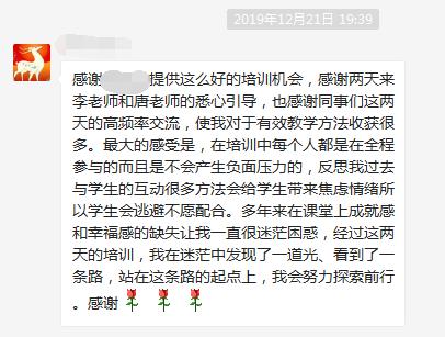 培训结束后,教师们纷纷表示这是他们参加过的最受启发、最与众不同的培训,让教师受益匪浅,并着手规划将所学内容应用到未来的个人教学设计中。同时有些老师培训结束后立刻进行了总结、教学设计和教学实际应用。