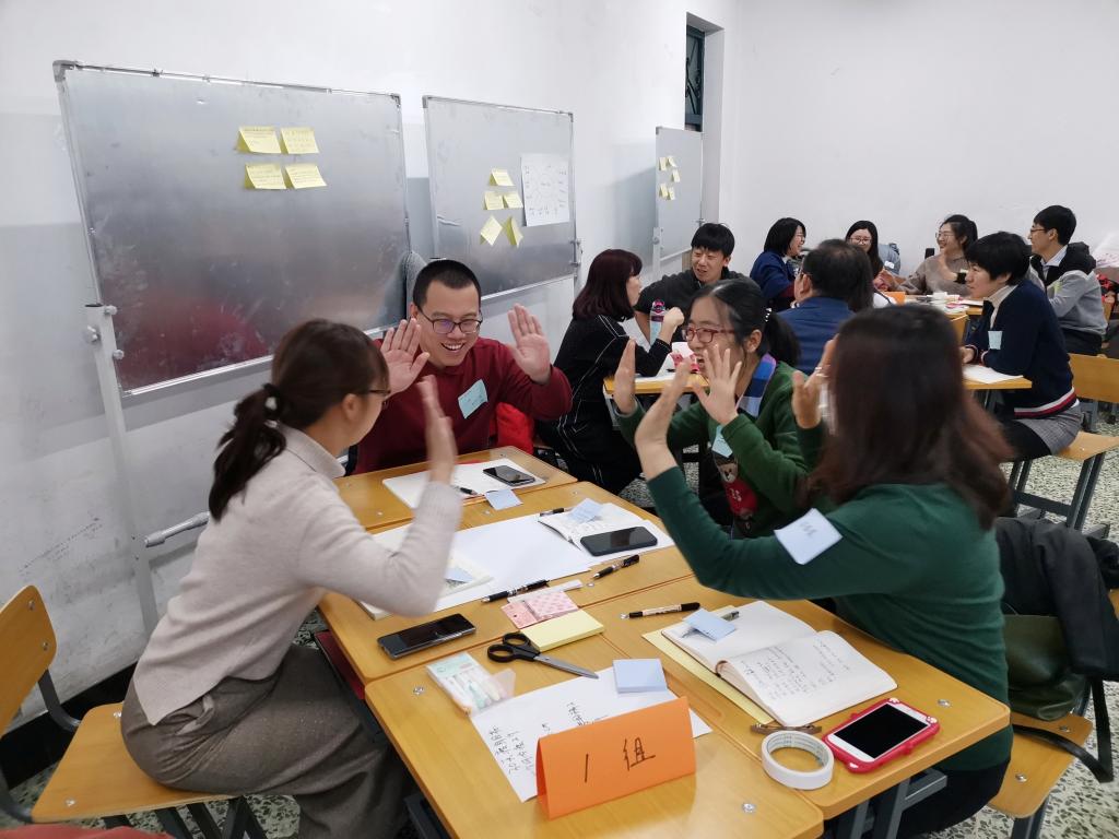 培训过程中,教师们热情高涨,积极配合,踊跃提问、发言,并进行分组讨论、组间交流,课堂教学设计,即时评价、反馈、总结。