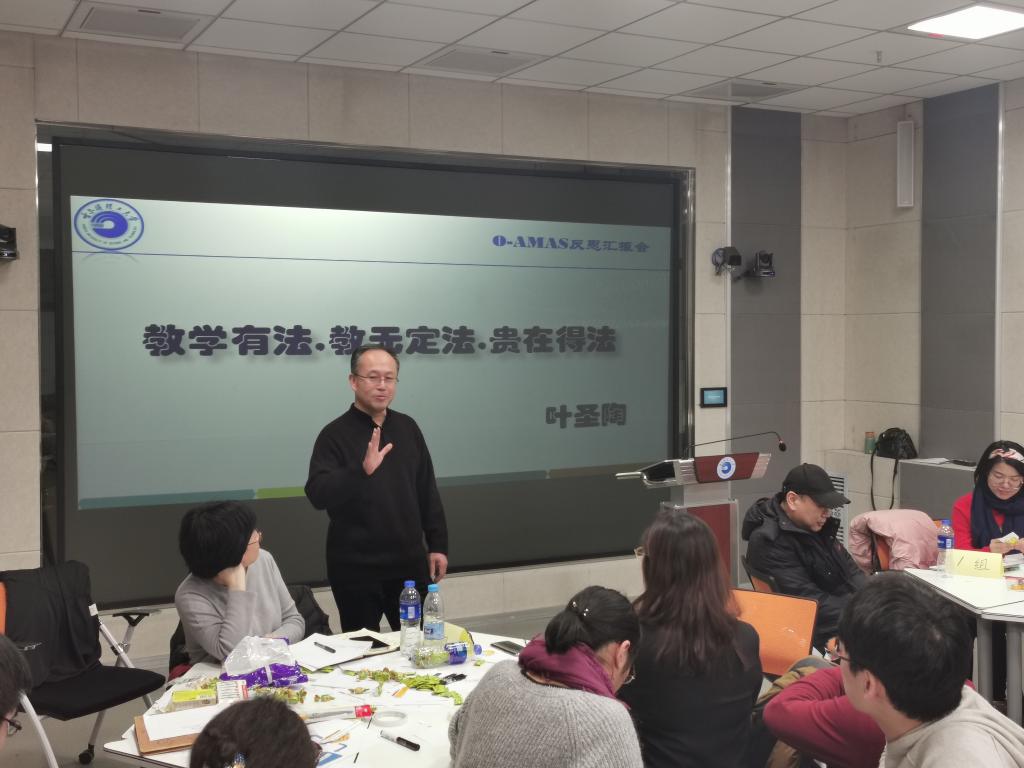 本次汇报会由外国语学院宋蓝蓝、田欣欣、理学院李莎莎、国际文化教育学院张明明、自动化学院刘立佳五位教师围绕“以学生为中心,成果导向,持续改进”的工程教育专业认证理念和O-AMAS 有效教学模型,从教学目标设计、迅速激活、多元学习、有效测评与反馈、简要总结五个方面同与会人员进行了反思总结,并结合自身承担课程的实际应用,进行了详细的汇报,并分享了叶圣陶老先生“教学有法,教无定法,贵在得法”这一至理名言。
