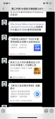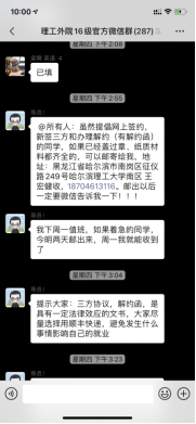 新冠肺炎突然来袭的这个春天,正值学生实习就业黄金期,大疫之下,16级辅导员王宏健老师成为了真真正正的“低头族”,每天不停地为同学们发布就业信息,为同学们解答各种各样的就业问题,努力做到“线上工作不松懈,就业工作不打烊”。同学们也没有辜负老师的付出,积极关注大学生各类求职服务信息,参加各大高校毕业生春季网络招聘会、就业指导云端课堂,并通过网络与企业进行面试及三方协议的签订。