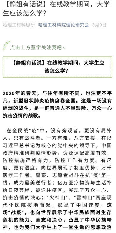 网文“静姐有话说”之《在线教学期间,大学生应该怎么学?》