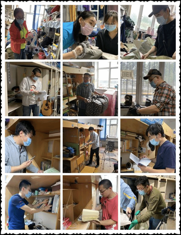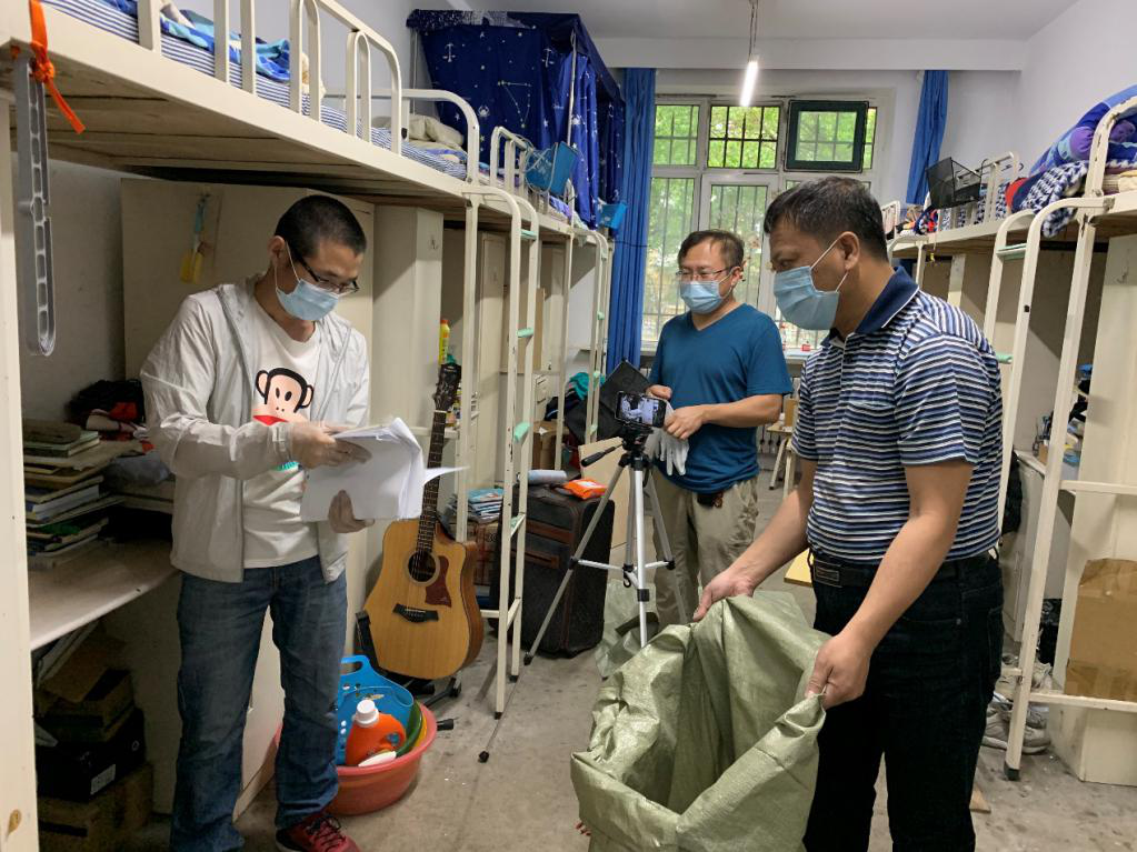 率先垂范,强化保障。6月20日-21日学院集中整理和邮寄毕业生物品,领导班子全体到岗,坚持靠前指挥,分别深入学生四公寓、七公寓和九公寓进行现场指导,身体力行,共同参与。校党委副书记陆岩和学生工作处处长杨忠学前来慰问我院教师,为师生志愿者鼓足了干劲。学院为志愿者们提供了视频连线三脚架,大幅提高了教师与毕业生视频连线即时整理宿舍物品的效率,同时也减轻了教师在整理工作中的身体负荷。刘献礼院长、姜彬副院长和副处级组织员王众作为七公寓71个寝室的总负责人,亲自上阵,指导有方,刘献礼院长还向师生演示使用三脚架的技巧,王众与志愿者负责4个寝室共22名毕业生的物品整理工作,通过与毕业生反复视频的方式确认打包物品,确保毕业生需要保留之物无一遗漏安全到家,他还赋诗《以情寄物——送别即将毕业的你》抒发自己参加志愿服务的真情实感。王义文副院长和张元副院长组织师生志愿者高质高效地完成了九公寓31个寝室的物品整理和邮寄工作。邓彩霞书记和杨芳副书记亲力亲为,带领女教师和女学生志愿者克服了女寝物品人均类别多、数量大的困难,认真细致地完成了四公寓14个女寝的物品整理和邮寄工作。邓书记看见一位志愿者搬着沉甸甸的大整理箱往校门口走,外面还下着小雨,就主动把她送回家,让这位毕业生感到很温暖。杨书记亲自为研究生和本科毕业生30余人整理物品和邮寄,义务给毕业生邮寄笔记本电脑、三方协议、学习用书等50余次,疫情期间为毕业生无微不至地服务,得到师生的赞扬。