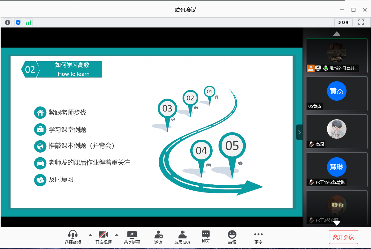 在补习活动正式开始之前,学习与发展支持辅导中心的部长联系各班班长收集信息,统计大一各班所需补习课程及内容。并联系各科小老师,协调小老师与大一同学的空闲时间,安排讲课事宜。此次辅导活动一共持续28天,共进行了2次集中的辅导培训。两次培训均采用腾讯会议的形式来进行线上集中辅导。