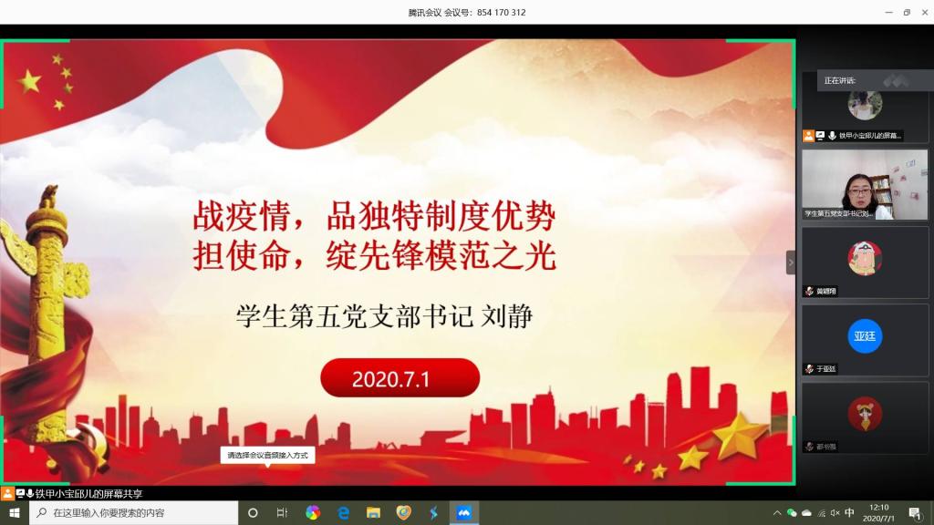 部分基层党支部运用不同形式献礼建党99周年。在新冠肺炎疫情防控进入关键期的今天,学生第五党支部用《美丽中国》诗朗诵,献礼建党99周年,唯有不忘初心,方可告慰先辈,唯有践行使命,方可谋得复兴。