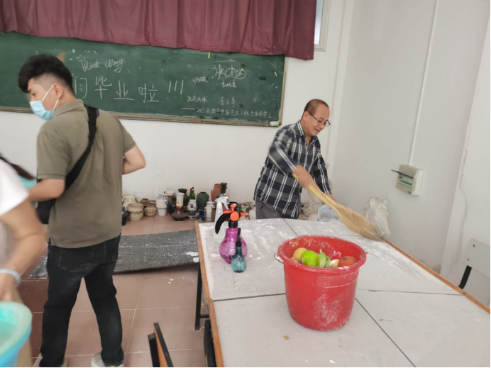 活动连续开展了两天。对学院“闲置”近8个月的学生寝室进行开窗通风;趁着不下雨阳光好的时候,对部分阴面房间里学生的被褥,拿到中心广场体育器材上进行晾晒;对南区四公寓所有学生专教进行通风、消杀;对教室内部分装修垃圾进行了清扫等等。