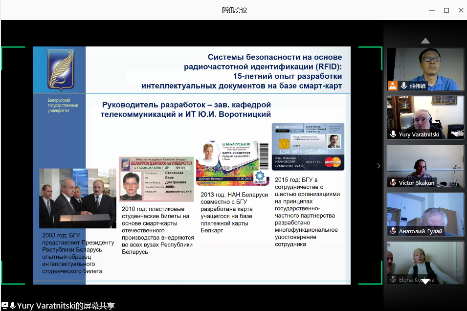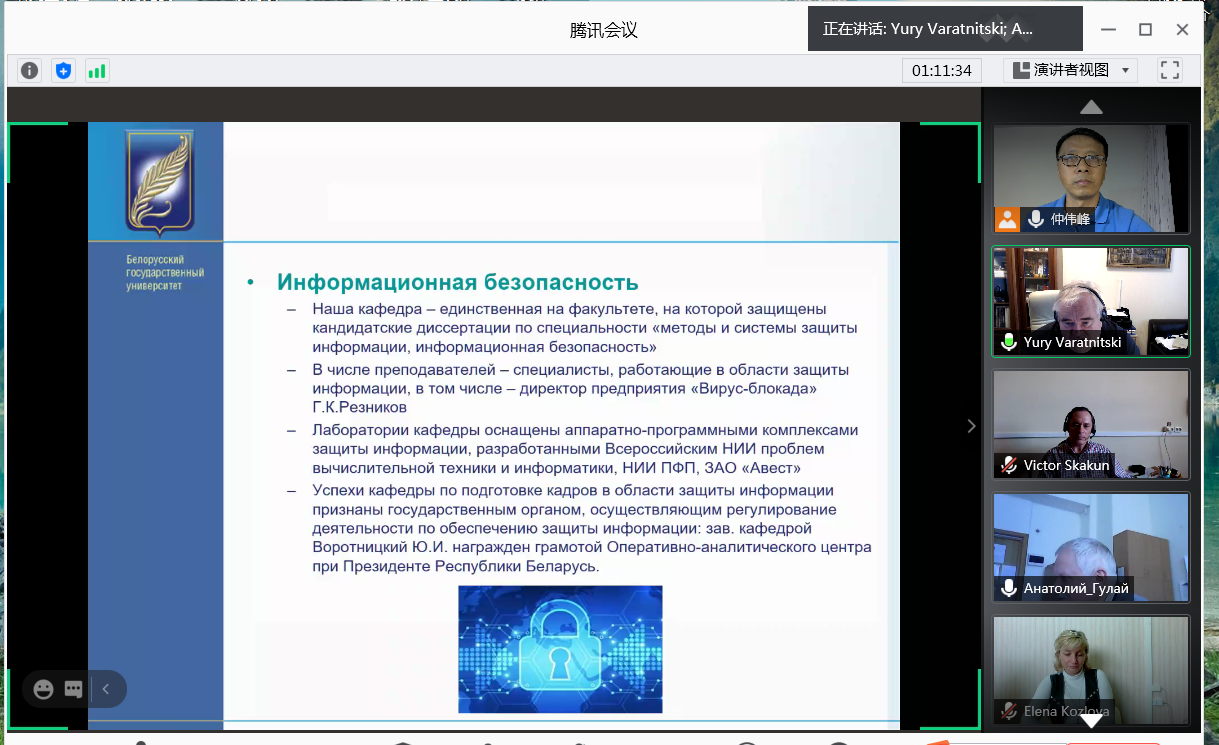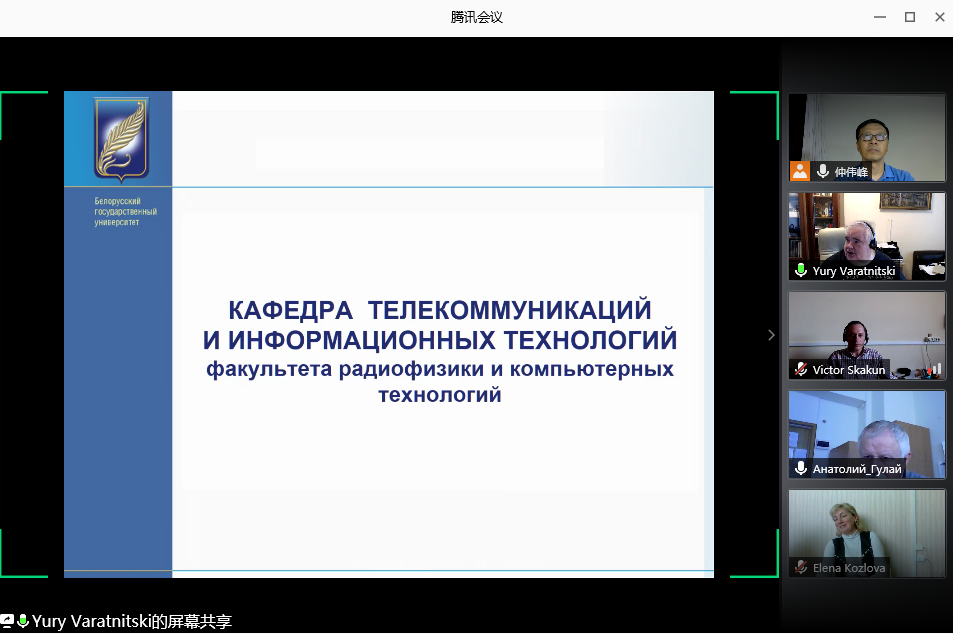 会议由我院仲伟峰副院长主持,孟庆松教授担任翻译,全院师生在线参加讲座。仲伟峰副院长对两位嘉宾及其团队表示热烈欢迎,感谢两位专家团队把前沿的学术成果和多年的工程经验无私分享,期待未来在基础研究、工程技术、人才培养等方面开展进一步的合作和交流。两位专家及其团队成员分别就智能控制、信息安全、医学图像处理、人的行为识别、机电工程、传感器微纳系统等技术领域进行学术讲座,并与师生展开线上交流。讲座创新务实,会议气氛热烈、融洽,为自动化学院与白俄罗斯高效开展合作打下了良好基础。