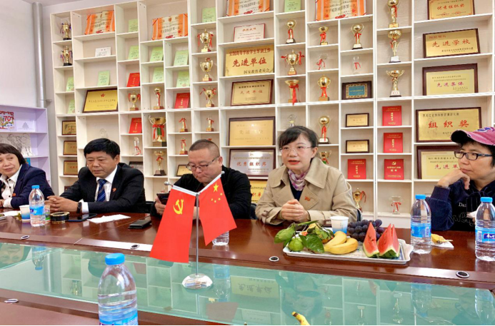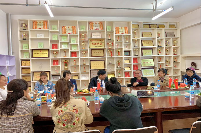 优秀校友许之顺(左三)、洪心欣(左四)交流