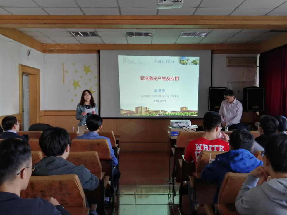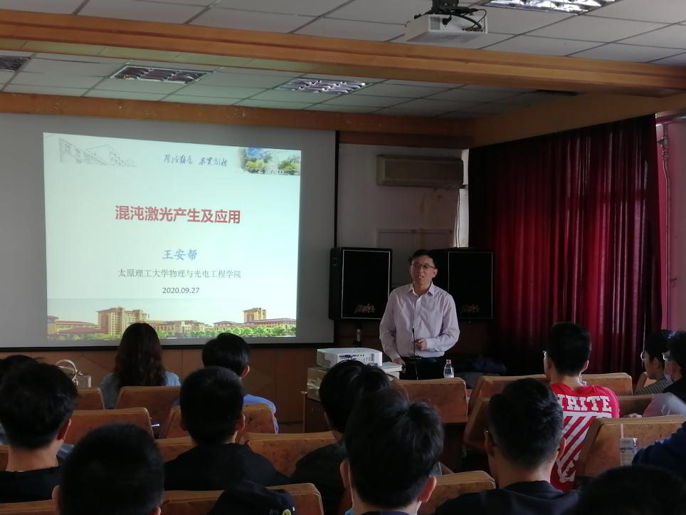 9月27日,应永利官网理学院黑龙江省量子调控物理重点实验室的邀请,太原理工大学物理与光电工程学院副院长王安帮教授做了题为“混沌激光产生及应用”的学术报告。报告会在理学院506室举行,由省重点实验室主任高玮教授主持,理学院物理系相关教师、研究生和“大珩班”本科生参加了此次讲座。