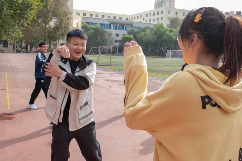 活动开始前,学生会成员正紧张筹备运动会所需物品,学生会指导教师付宇到达比赛现场,视察并指导活动的进行。
