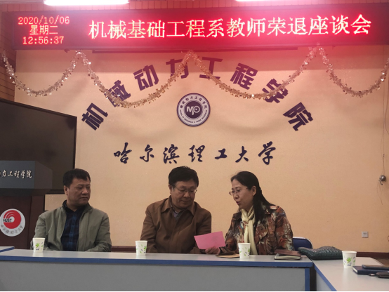 步入座谈会会场,电子屏上“机械基础工程系教师荣退座谈会”的几个大红字格外鲜艳,桌上摆放着的茶水热气腾腾,很暖人心,气氛温馨而热烈。会议伊始,由支部书记鲍玉冬介绍了张春宜教授的学习、工作经历,代表全系教师向张老师表达了他执教38年来为校院发展、系党建及教学科研工作的辛勤耕耘和无私奉献的崇高敬意,并提议全场用热烈的掌声向张老师致敬。