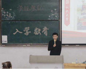 新生辅导员王宏健老师主持进行了角色转换教育,明确各班班级分工,并进行党性启蒙教育。强调责任与使命同在,压力与动力并存。19级辅导员老师马宁带领团委副书记金士男主持开展了校情校史教育,为新生同学们普及校情校史,感受历史,承载期望,砥砺前行。