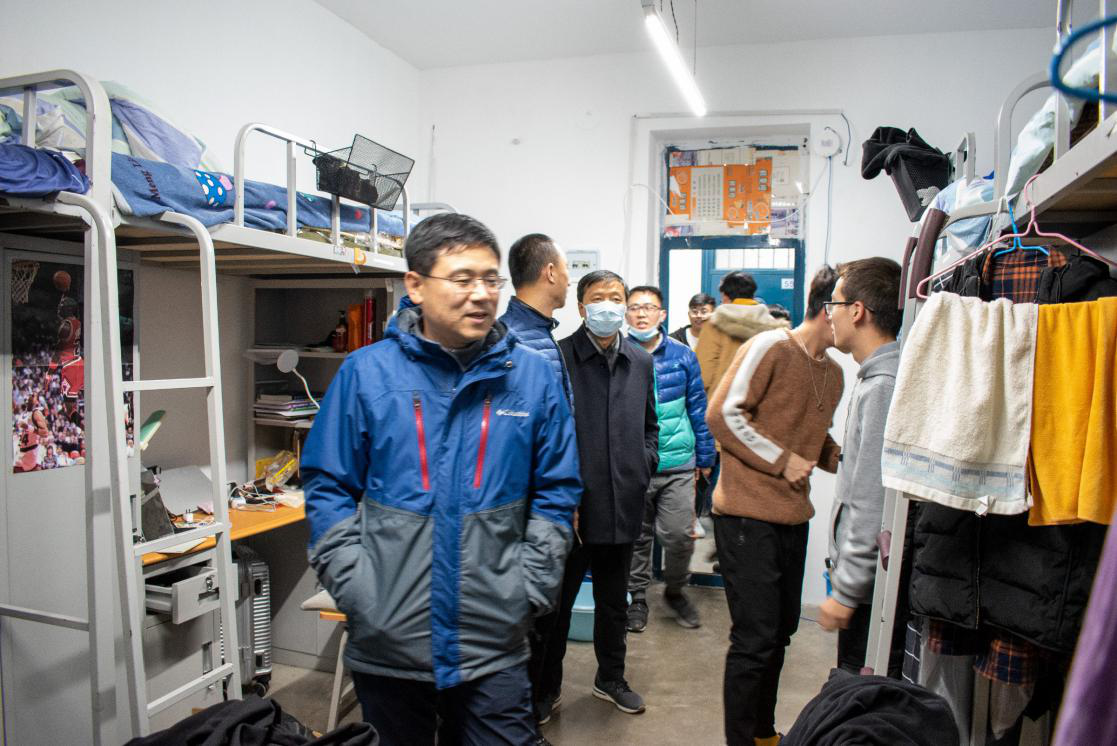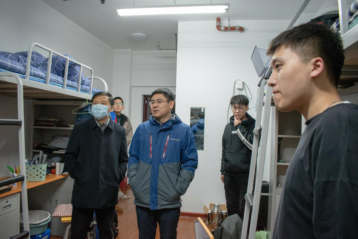 随后,院领导走访实训楼20级研究生寝室。研究生寝室卫生整体水平较好,房间整洁。院领导还了解学生目前科研工作以及学习生活状况,嘱咐同学们尽快融入导师团队,选好研究方向,争取早出成果。