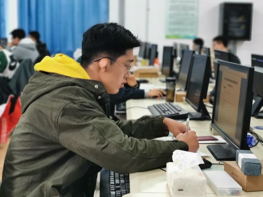 赛前各位老师早早来到赛点为同学们调试好电脑设备并解决软件安装问题,力求为所有参赛选手提供一个良好的比赛环境。现场监考老师在检查学生有效证件、核对参赛学生信息后,引导同学们有序的入场。比赛在上午九点正式开始,比赛期间,现场负责技术的陈才、梁欣涛老师帮助同学解决许多赛场上的突发问题,为所有参赛选手做好赛场服务工作,让同学们能安心赛,静心比。负责监考的陈亭、张诗阁老师下场巡视以维持好现场秩序,保证比赛公平有序进行。