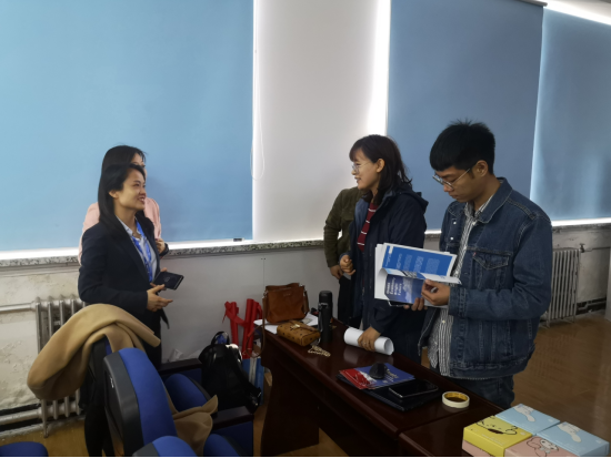 外国语学院周晓丽书记和辅导员李竖新、于海滨与九丰集团人力资源部领导洽谈