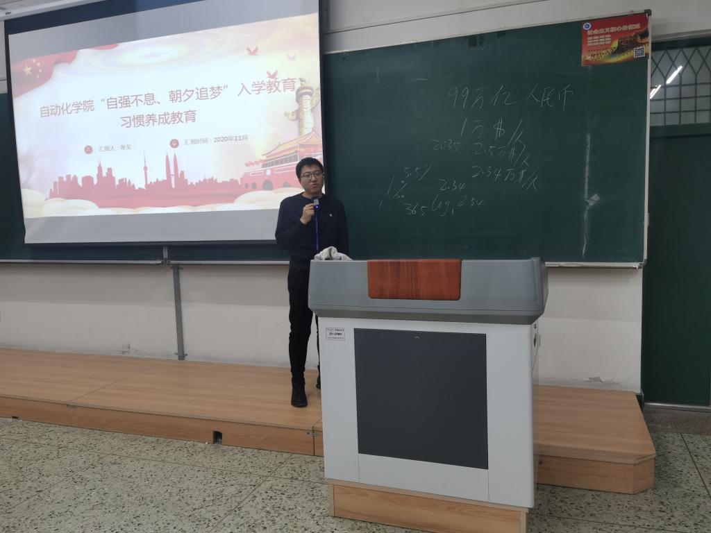为帮助新生熟悉、接纳并适应大学生活,养成良好的行为习惯。2020年11月5日18时,自动化学院辅导员张戈于新主楼B514和A102开展以“自强不息、朝夕追梦”为主题的入学教育之习惯养成教育,自动化学院2020级全体新生参加了本次讲座。