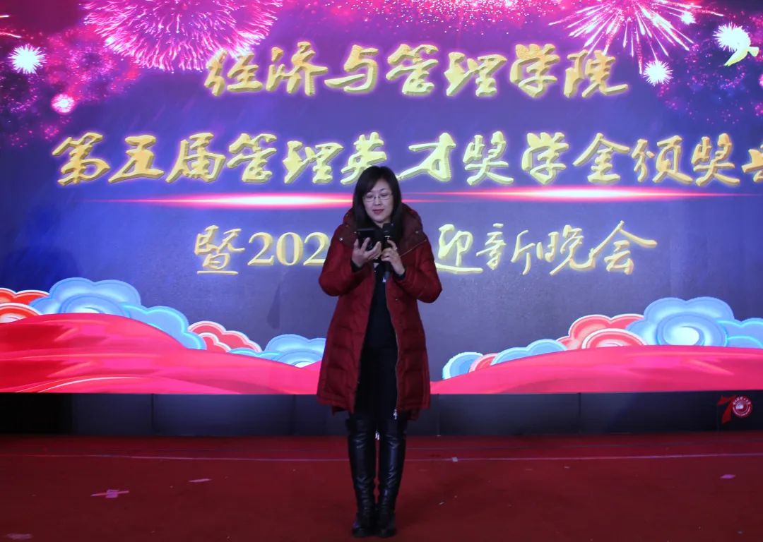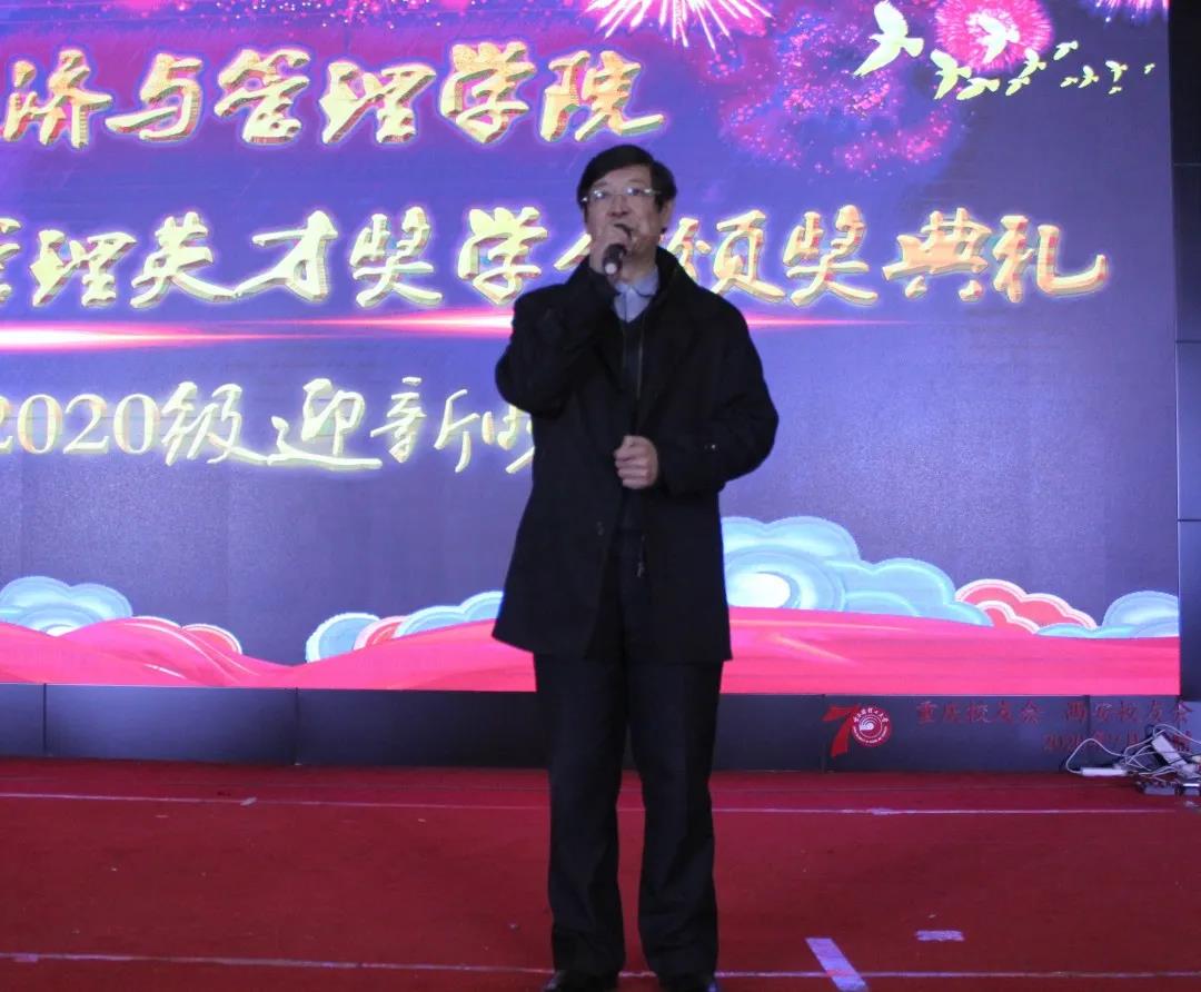 2020年 11月27日 晚6:00 ,经济与管理学院于西区一号楼0220室成功举行第五届管理英才奖学金颁奖典礼暨2020级迎新晚会。经济与管理学院党委书记周长群、副院长李玥、党委副书记兼副院长宋广军、各系主任、2020级新生班主任、全体新生辅导员老师以及2020级全体新生出席了本次晚会。