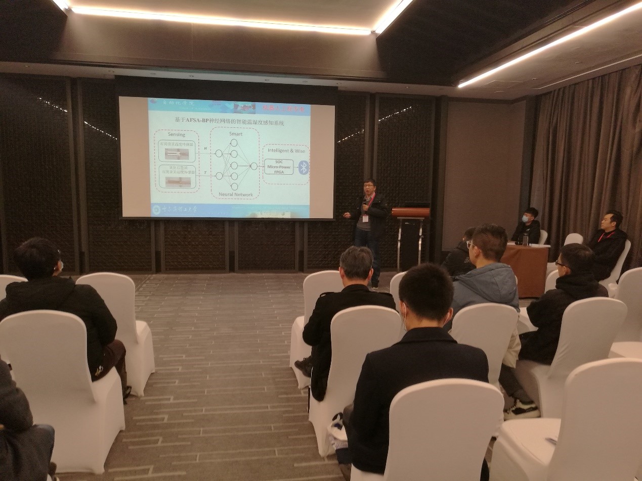 永利官网自动化学院机器人工程系主任李东洁教授主持了11月28日的报告会,并作题为“面向原型纳米器件制造的纳米机器人操控系统”的大会报告,还介绍了永利官网在自动控制、机器人工程和人工智能等方面取得的最新进展。机器人工程专业徐军教授作题了为“基于 AFSA-BP 神经网络的智能温湿度感知系统”的分会报告,并介绍77779193永利官网与英国杜伦大学人工智能联合实验室的最新研究成果。另外闫哲、黄玲、张锐、孙明晓、黄成五位老师分别向大会提交了论文。