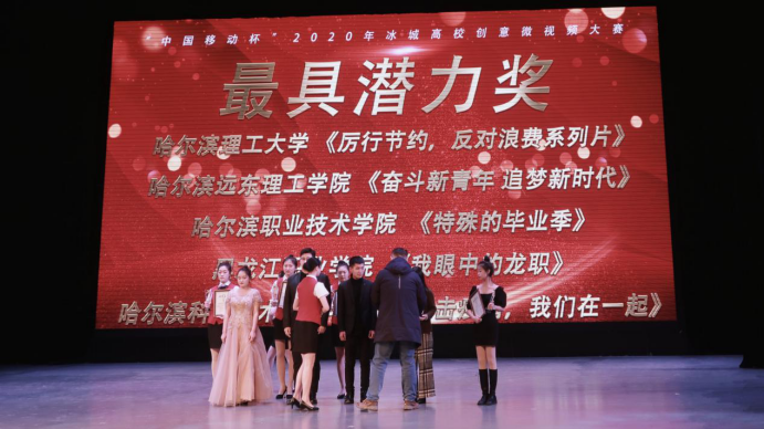 本次大赛颁奖典礼由黑龙江省高校网络思想政治工作中心、共青团哈尔滨市委员会、哈尔滨市学生联合会、哈尔滨日报社主办,哈尔滨日报社融媒体教育工作室承办,黑龙江财经学院协办。虽受疫情影响,投稿热情高涨的冰城学子却用300 多部风格各异、创意满满的微视频作品展示出当代大学生的青春风采。活动共吸引到来自 20 余所高校的上千名学子投稿参赛,在历经作品征集、展示阶段后,哈理工艺术学院团委的参赛作品《厉行节约,反对浪费系列片》脱颖而出,荣获“最具潜力奖”。