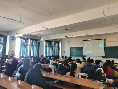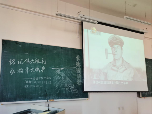 外国语学院党委副书记、副院长周晓丽、辅导员李竖新、于海滨、王宏健、王梓懿老师带领学院全体党员观看《长津湖战役纪录片》