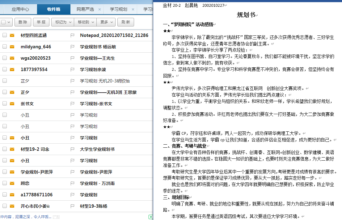 本活动以视频展播为形式,全方面的展示了几位品学兼优的先进个人们的学习、生活、工作、科研竞赛等方面的内容。活动为全院学生树立榜样,帮助刚刚走入校园的新生答疑解惑、以积极向上的心态应对全新的大学生活,引导他们有目的的规划今后的学习和生活。此次活动同时在线上哔哩哔哩bilibili面对各年级学生进行线上展播(搜索HUST材料勤助中心),同学们同时可以在线上互动,对于科研竞赛和学业生活上的困惑在线上进行留言,各位先进个人线上为大家答疑解惑、指点迷津。