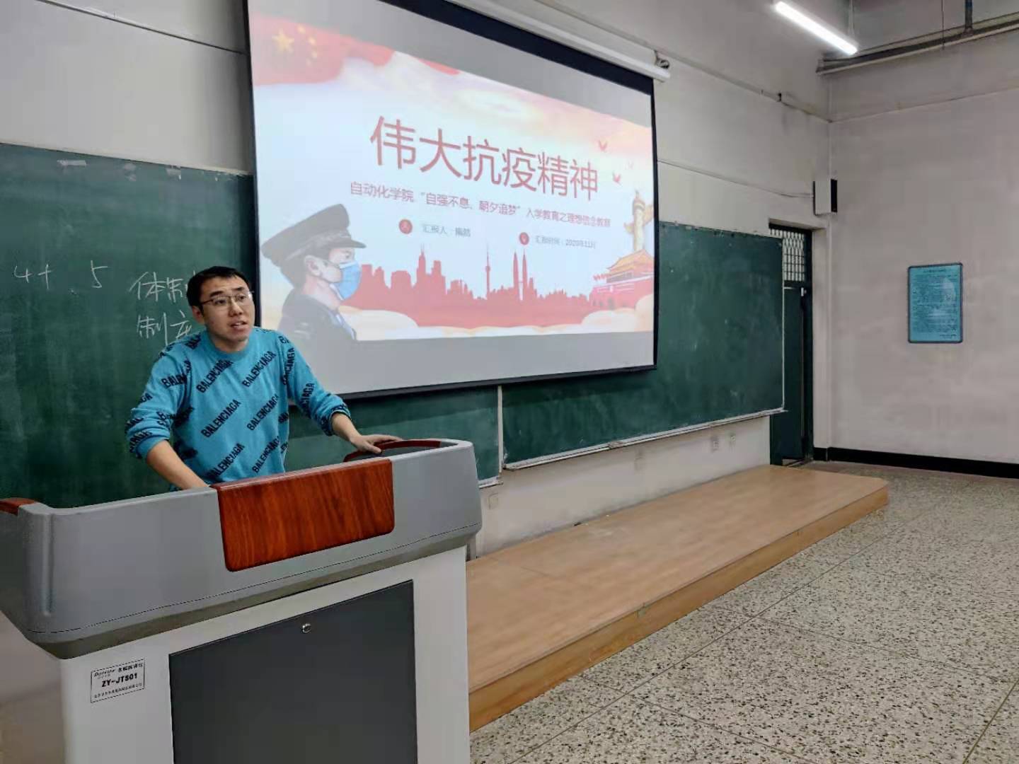 为了深入学习习近平在全国抗击新冠肺炎表彰大会上的讲话精神,充实以立德树人为根本、以理想信念教育为核心的思想政治教育工作内容,自动化学院辅导员隋然于12月5日开展题为“抗疫伟大胜利和中国特色社会主义”的主题教育讲座。讲座从生命至上、举国同心、舍生忘死、尊重科学、命运共同的伟大抗疫精神出发,联系当下国情,强调了牢固树立坚定“四个自信”的重要意义和青年大学生的历史使命和时代责任。